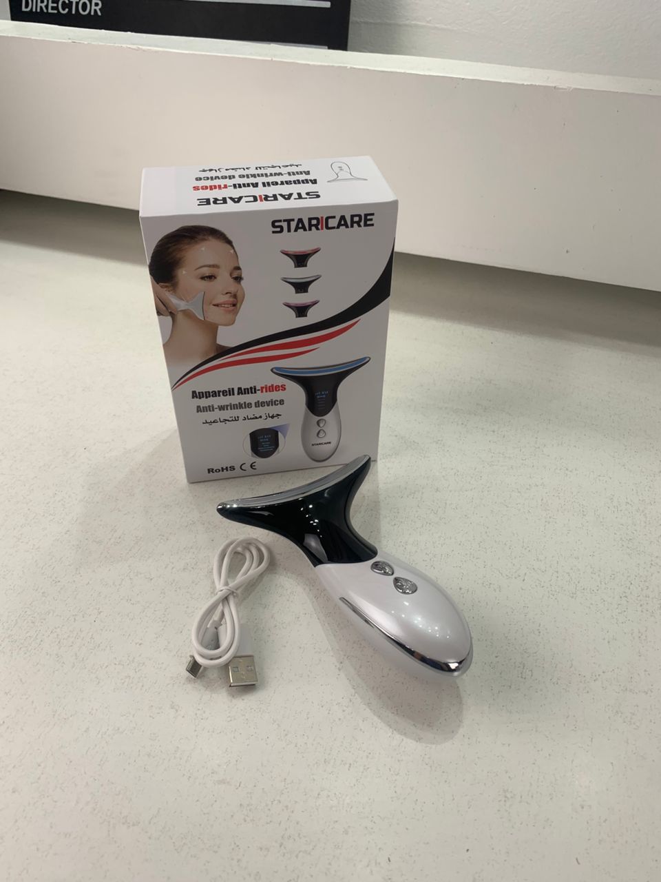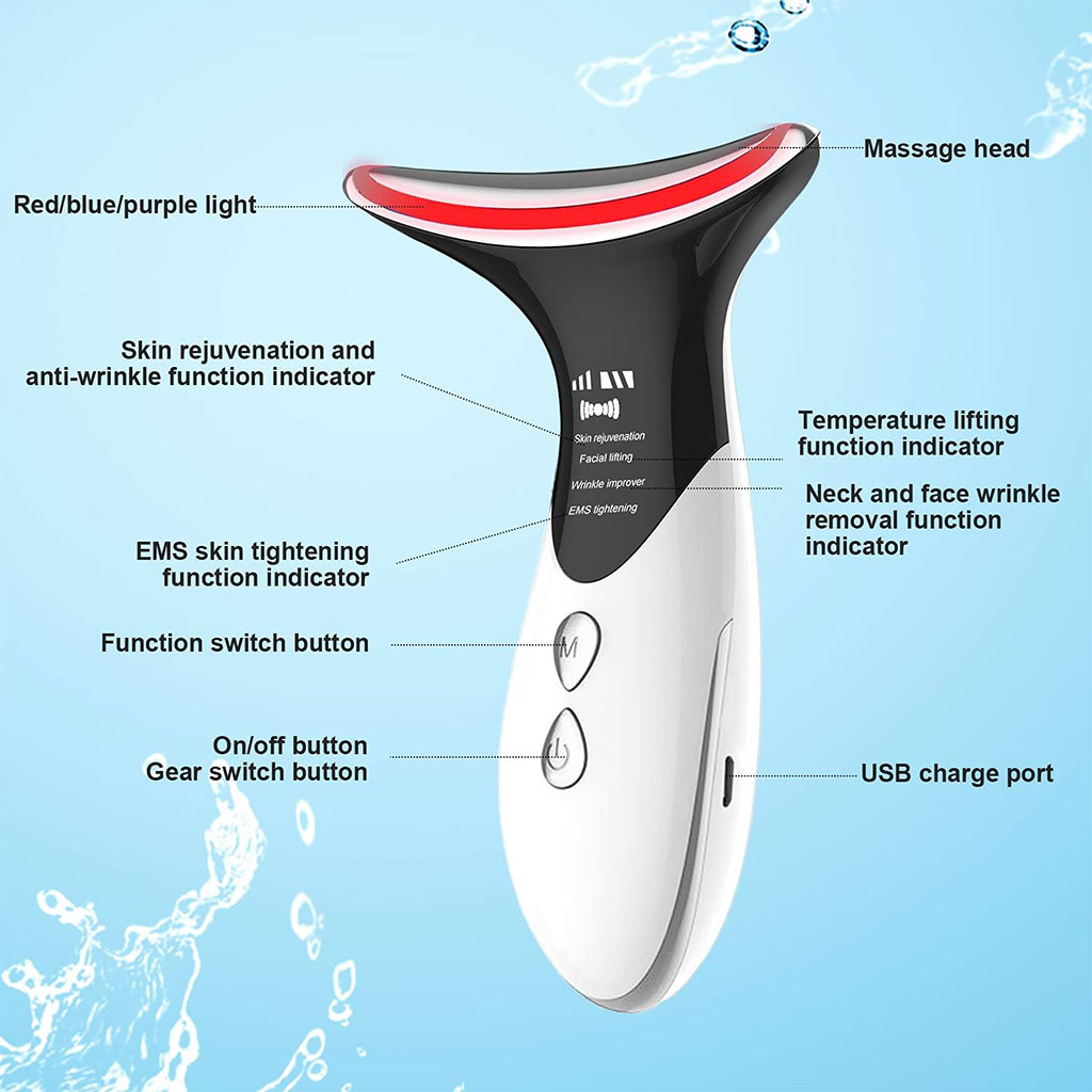 إزالة الذقن المزدوج وتحفيز التصريف اللمفاوي.شدّ الرقبة وتنعيم البشرة.مكافحة التجاعيد.المحافظة على شباب وجمال طبيعي وصحي.تقنية إدخال الأيونات مع ذبذبات عالية التردد 11,000 مرة/دقيقة لامتصاص أعمق وفعالية أكبر لمنتجات العناية بالبشرة.مزوّد بـ 3 أوضاع علاج بالضوء LED : أزرق، بنفسجي وأحمر.تدفئة حرارية لفتح المسام وزيادة امتصاص الكريمات والسيروم.تصميم مقوّس يتناسب مع منحنيات الرقبة والجسم لتدليك انسيابي ومريح.شحن USB عملي وسهل الحمل في أي مكان.متعدد الاستخدامات : لا يقتصر على الرقبة فقط، بل يمكن استخدامه أيضًا على الكتفين وأجزاء أخرى من الجسم لتعزيز فعالية منتجات العناية.📋 المواصفات :